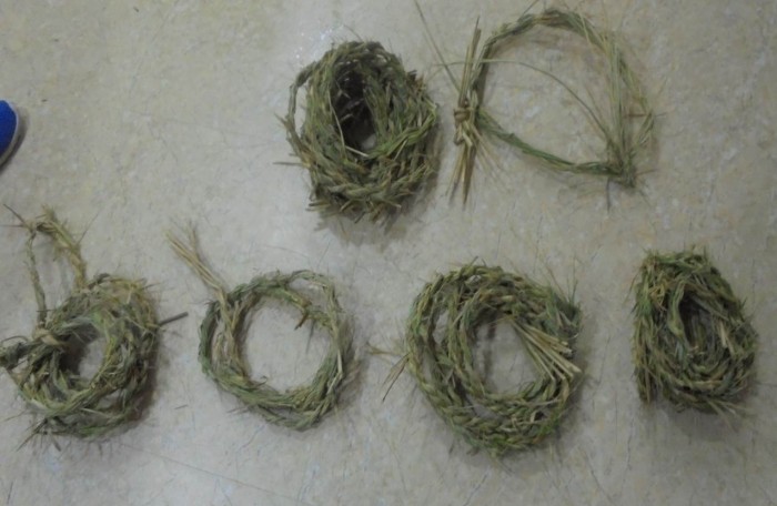2. 3줄을 연이어 지푸라기를 연결해준다 꼰다,