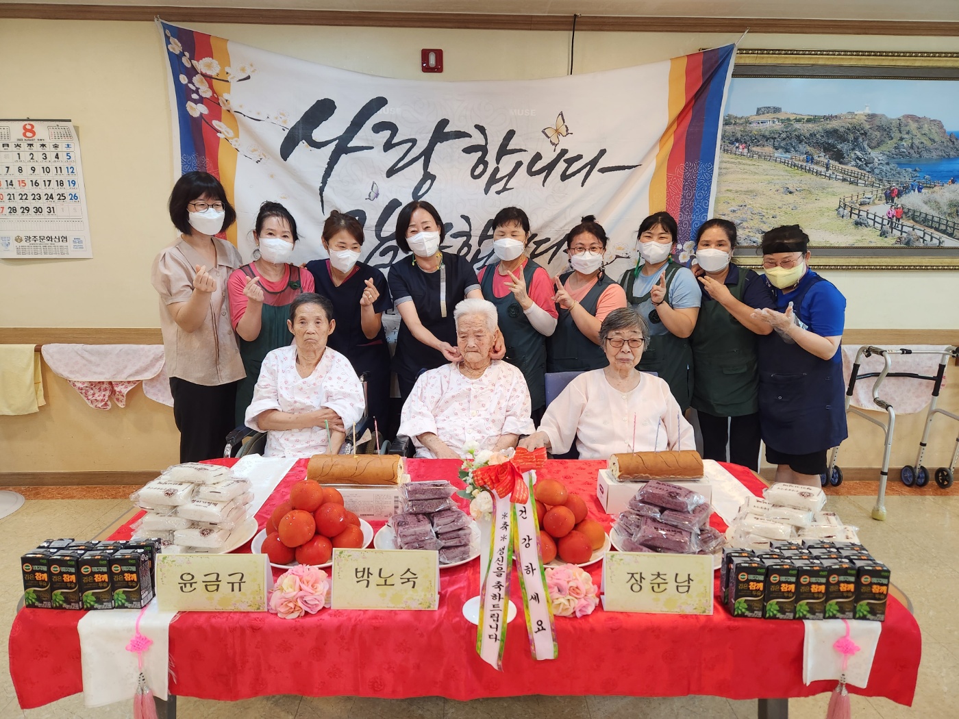 박노숙 어르신, 윤금규 어르신, 장춘남 어르신 생신 축하드려요.